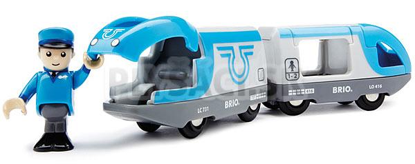 Elektrická nákladná lokomotíva. (batérie AA nie je súčasťou) jazdí len dopredu. Je skvelým doplnkom na drevené koľaje.