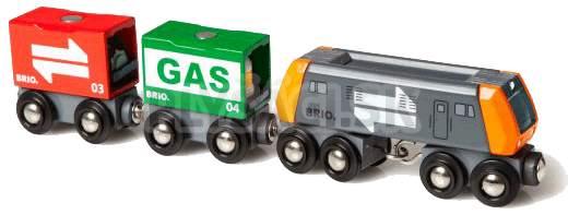 Nákladná lokomotíva s 2 vagónikmi prepravujúcimi zlato je plne naložená. Ešteže majú vláčiky ** Brio ** takú silu. Pomocou magnetu možno ľahko zlato nakladať a …