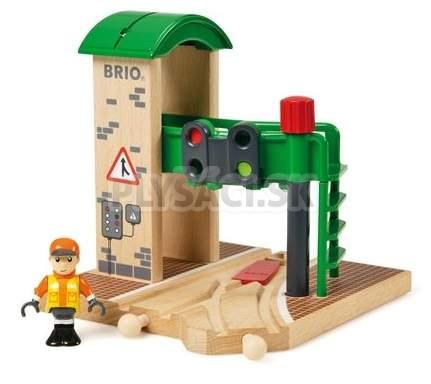 Signálna stanica s výhybkou. Ako rozširujúci set k vašej vláčikodráhe Brio. Otáčaním červeného gombíka rozhodnete akým smerom sa vlak vydá či zastaví alebo bude pokračovať ďalej v jazde